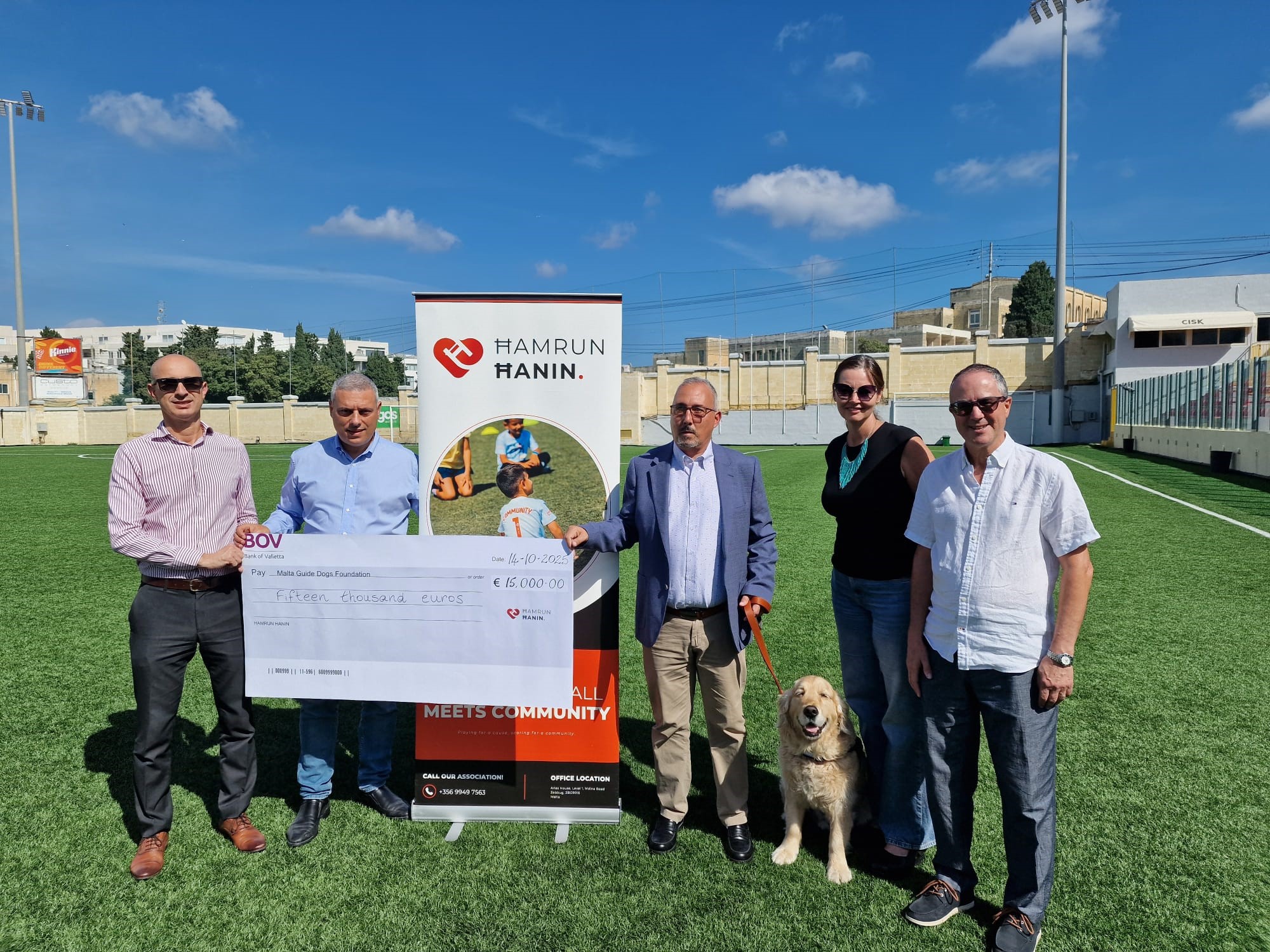 Ħamrun Ħanin has presented a donation of €15,000 to the Malta Guide Dog Foundation (MGDF). This will enable the purchase of a guide dog for a visually impaired person, and the selection of both the recipient and the dog is currently underway in collaboration with MGDF and other support organisations.